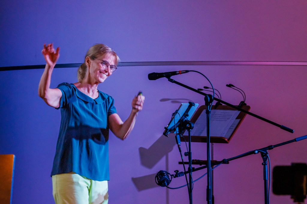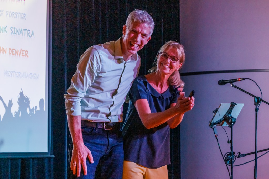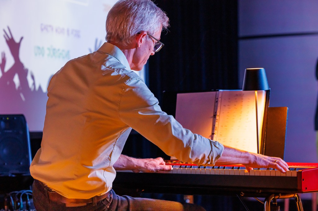 Rita Wermes vermag als professionelle Chorleiterin das Publikum dezent zu unterstützen, Wolfgang Thier geleitet es als versierter Pianist mit großer Spielfreude durch den Abend. Währenddessen werden optisch gut aufbereitete Texte mitlaufend an die Wand projiziert.